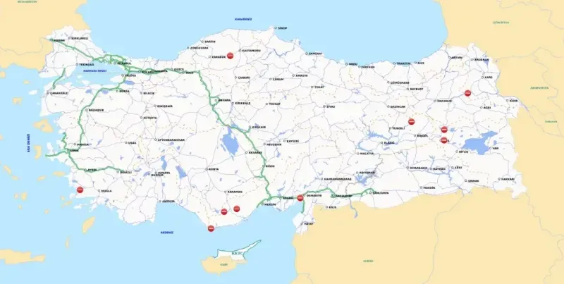 - 40-64. kilometreler arasında çeşitli kesimlerde yapılan yol şevi temizliği nedeniyle trafik, kısa süreli aralıklarla durdurularak tek şeritten kontrollü şekilde veriliyor.