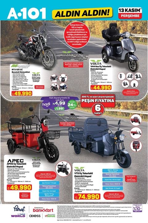 Volta ve Apec Elektrikli Motorlar A101’de!