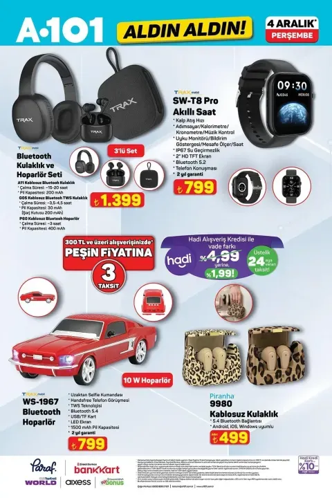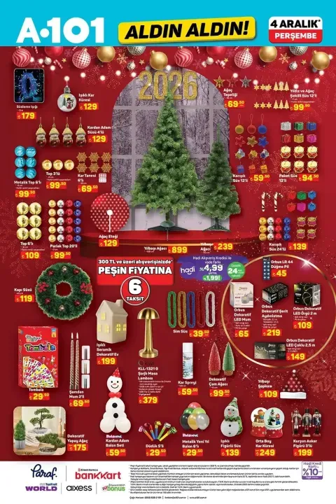 A101’in 4 Aralık Perşembe günü geçerli dev aktüel kataloğu yayınlandı. 65 inç QLED TV’den motosiklete, yılbaşı dekorasyonlarından kişisel bakım ürünlerine kadar yüzlerce ürün indirimli fiyatlarla raflara geliyor. Teknoloji meraklıları, ev alışverişi yapanlar ve yılbaşı hazırlığına başlayanlar için bu haftanın en kapsamlı indirim listesi haberimizde.