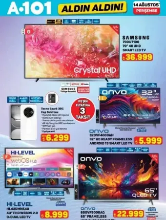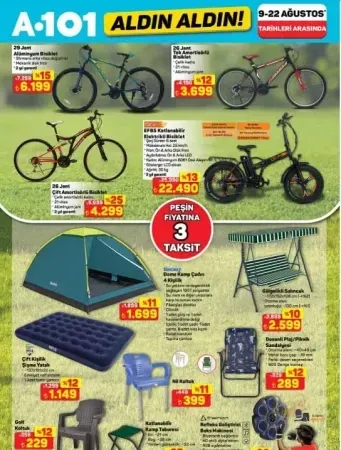 Okulların açılmasına sayılı günler kala A101, 14 Ağustos 2025 Aldın Aldın kataloğu ile rafları dopdolu yapmaya hazırlanıyor. Bu hafta hem öğrencilerin hem de ev, spor ve kamp tutkunlarının ilgisini çekecek onlarca ürün indirimli fiyatlarla satışa çıkıyor. Koşu ve yürüyüş bantlarından kamp çadırlarına, televizyonlardan elektrikli bisikletlere kadar yok yok!