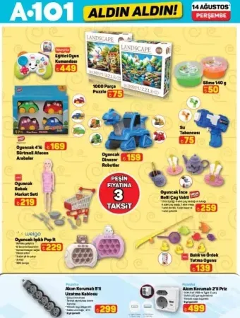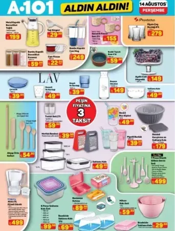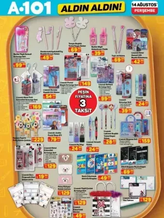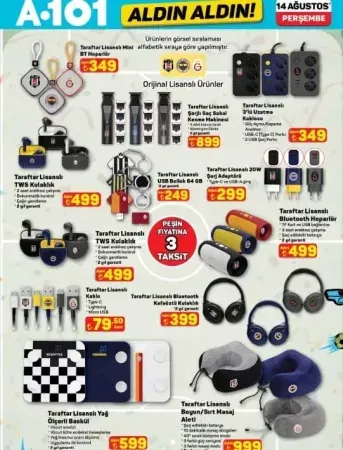 Okul sezonu öncesinde A101 kırtasiye ürünlerini de unutmuyor. Lisanslı pastel boyalı kırtasiye seti 149 TL, abaküslü yazı tahtası 129 TL, Tavşan başlıklı yumurtlayan kalem 69,50 TL, Sonic çıkartmalı aktivite kitapları 49,50 TL fiyatıyla dikkat çekiyor. Ayrıca taraftar lisanslı kulaklık 499 TL’den satılacak.