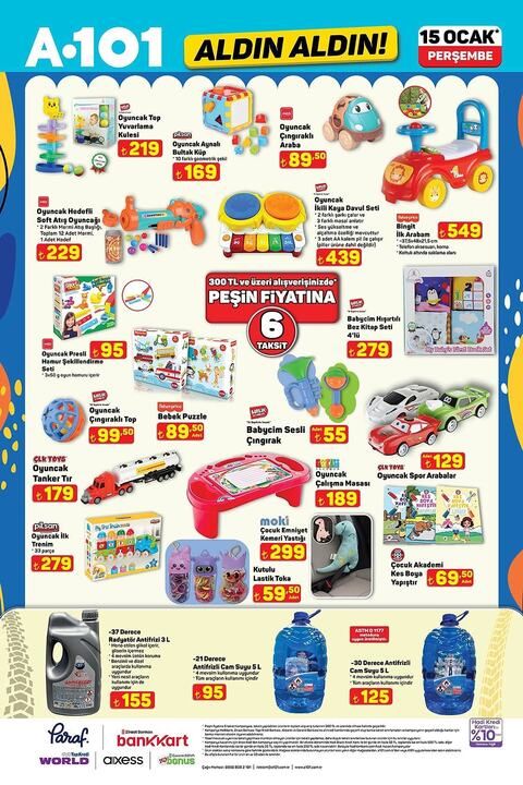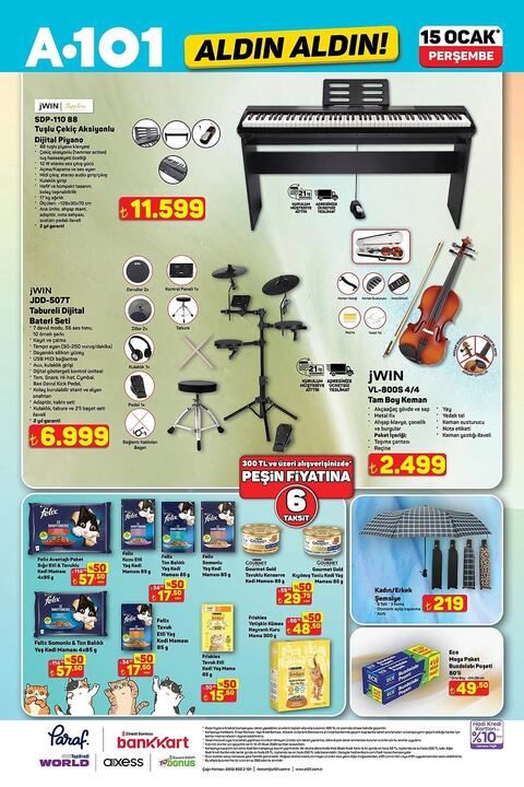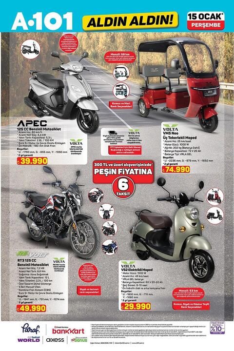 15 Ocak Perşembe günü başlayacak A101 “Aldın Aldın” kampanyasında beyaz eşyadan televizyona, küçük ev aletlerinden elektrikli mopede kadar yüzlerce ürün peşin fiyatına taksit avantajıyla satışa çıkıyor. Sınırlı stoklu fırsatlar mağazalarda erken saatlerde tükenebilir.
