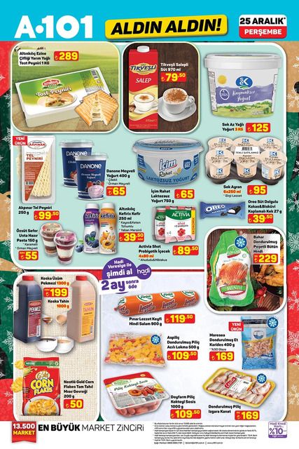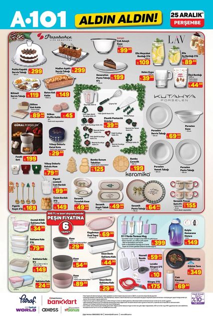 Güncel A101 aktüel kataloğunda; televizyon, küçük ev aletleri ve mutfak araç gereçlerinin yanı sıra pastacılık malzemeleri, pijama takımları, temel gıda ve ihtiyaç ürünleri yer alıyor. Alışveriş takipçilerinin yakından takip ettiği 25 Aralık A101 aktüel ürünler listesi belli oldu. Peki, bu hafta A101’de hangi ürünler indirime girdi? İşte A101’de haftanın fırsatları…
