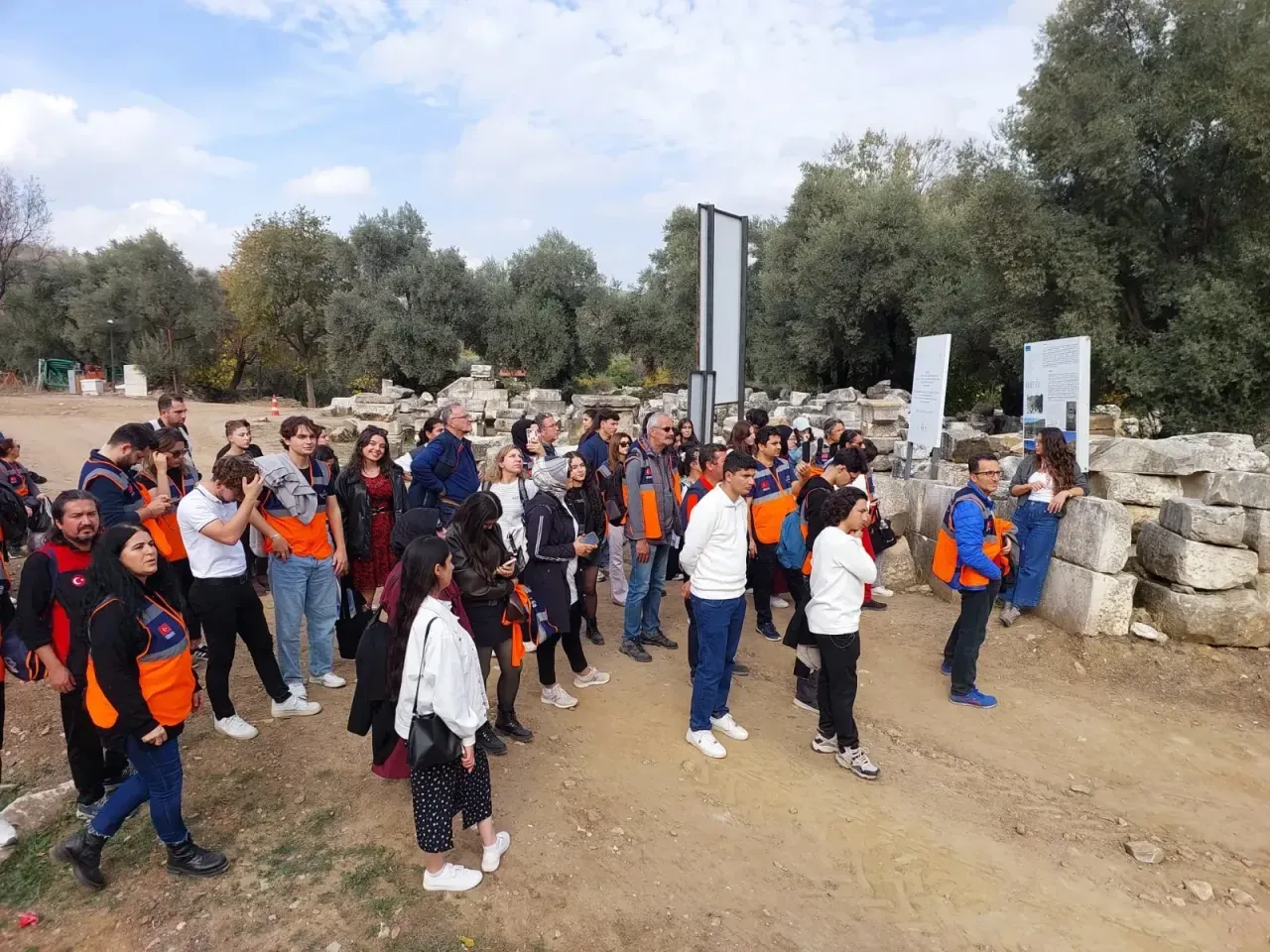 Muğla AFAD İl Müdürlüğü koordinesinde yapılan gezide gönüllüler, UNESCO Dünya Mirası Geçici Listesi’nde yer alan Stratonikeia’da antik tiyatrodan meclis binasına, Osmanlı dönemi taş döşeli sokaklardan eski köy meydanına kadar uzanan geniş bir tarihi dokuya tanıklık etti.