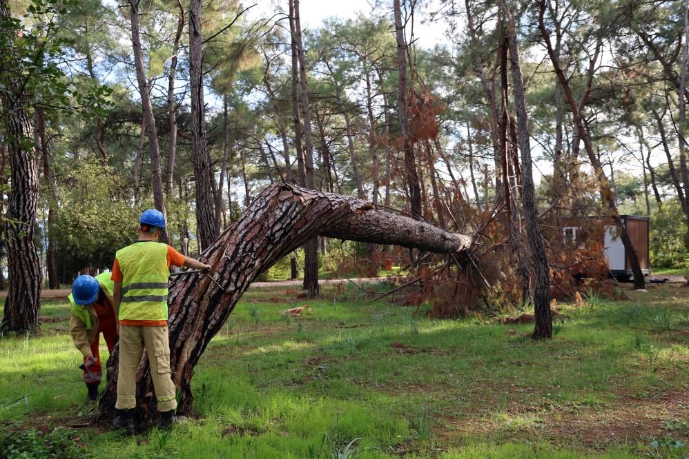Muğla Orman Bölge Müdürlüğü tarafından yürütülen çalışma kapsamında, risk taşıyan ağaçlar hem havadan dron kamerası ile hem de yer ekipleri tarafından belirlenerek işaretleniyor. 2024 yılındaki gibi benzer kazaların yaşanmaması amacıyla kamp alanı içinde detaylı bir tarama yapılıyor.