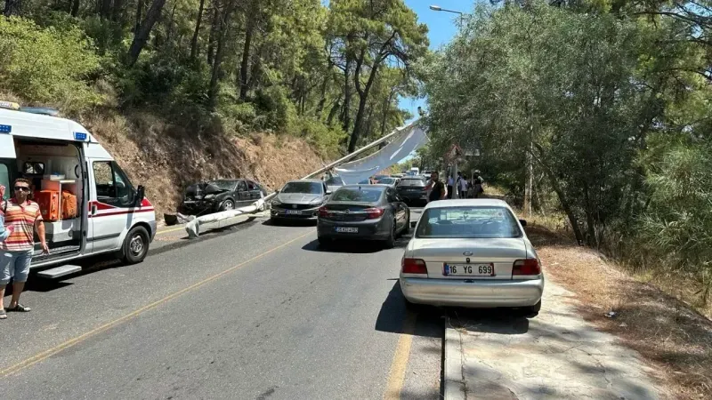 Muğla’nın Ula ilçesi Akyaka Mahallesi girişinde, freninin tutmaması sonucu direğe çarpan otomobilin devirdiği direk, başka bir aracın üzerine düştü. Kazada 3 kişi hafif yaralandı.
