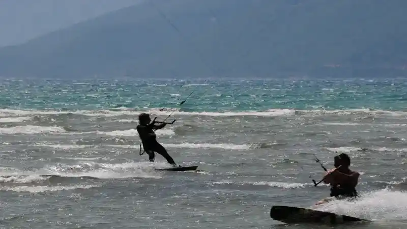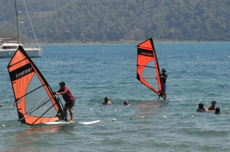 Rüzgar sörfü: Özellikle gençlerin ilgisini çeken bu spor, Akçapınar sahilinde eğitimli eğitmenler eşliğinde yapılabiliyor.