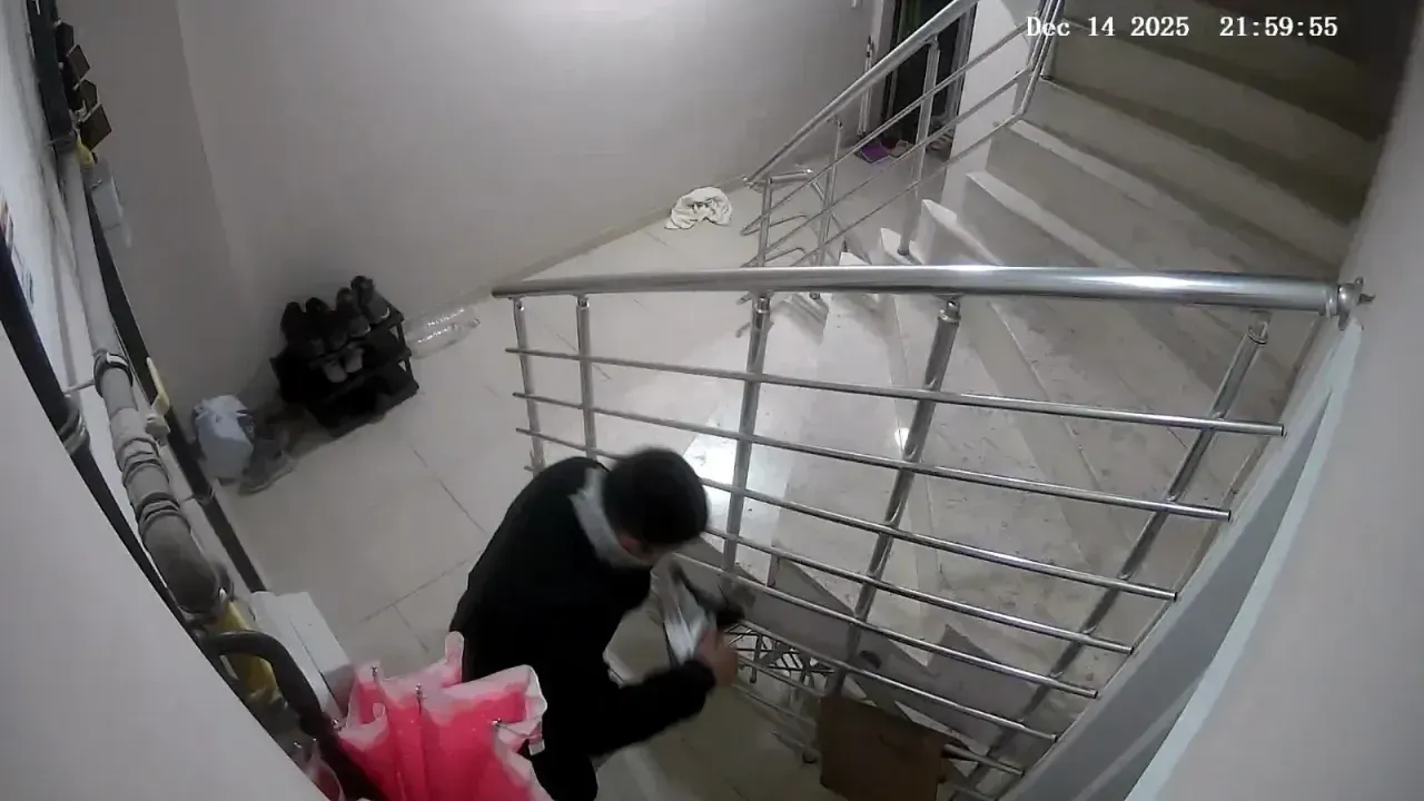 Apartman dairelerinin önlerinde bırakılan ayakkabıların çalınması mahalle sakinlerini tedirgin etti. Hırsızlık anı, güvenlik kameralarına yansıdı.