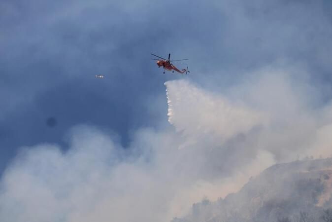 Aydın’ın Efeler ilçesinde zirai alanda başlayan yangın ormana sıçrarken, ekiplerin alevlere karadan ve havadan müdahalesi sürüyor.