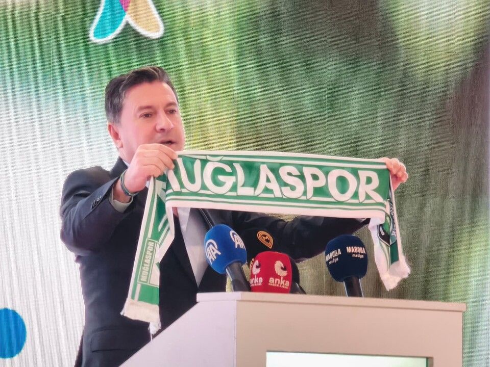 Menteşe Belediye Başkanı Gonca Köksal Aras'ın ardından kürsüye çıkan Muğla Büyükşehir Belediye Başkanı Ahmet Aras, konuşmasına Muğlaspor'a sahip çıkacaklarını belirterek başladı ve sivil toplumun önemine dikkat çekti.