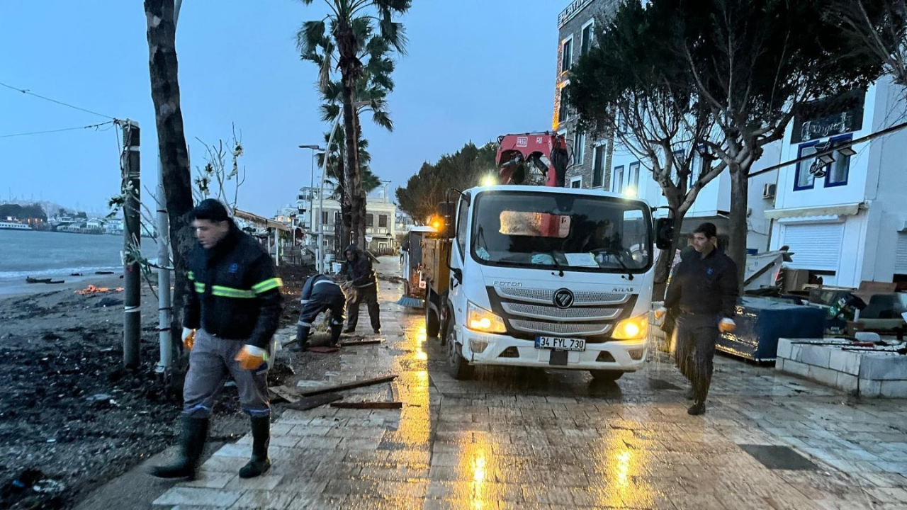 Bodrum Belediyesi, ilçe genelinde etkili olan fırtına ve yoğun yağışların ardından sahillerde kapsamlı temizlik çalışmaları gerçekleştirdi.