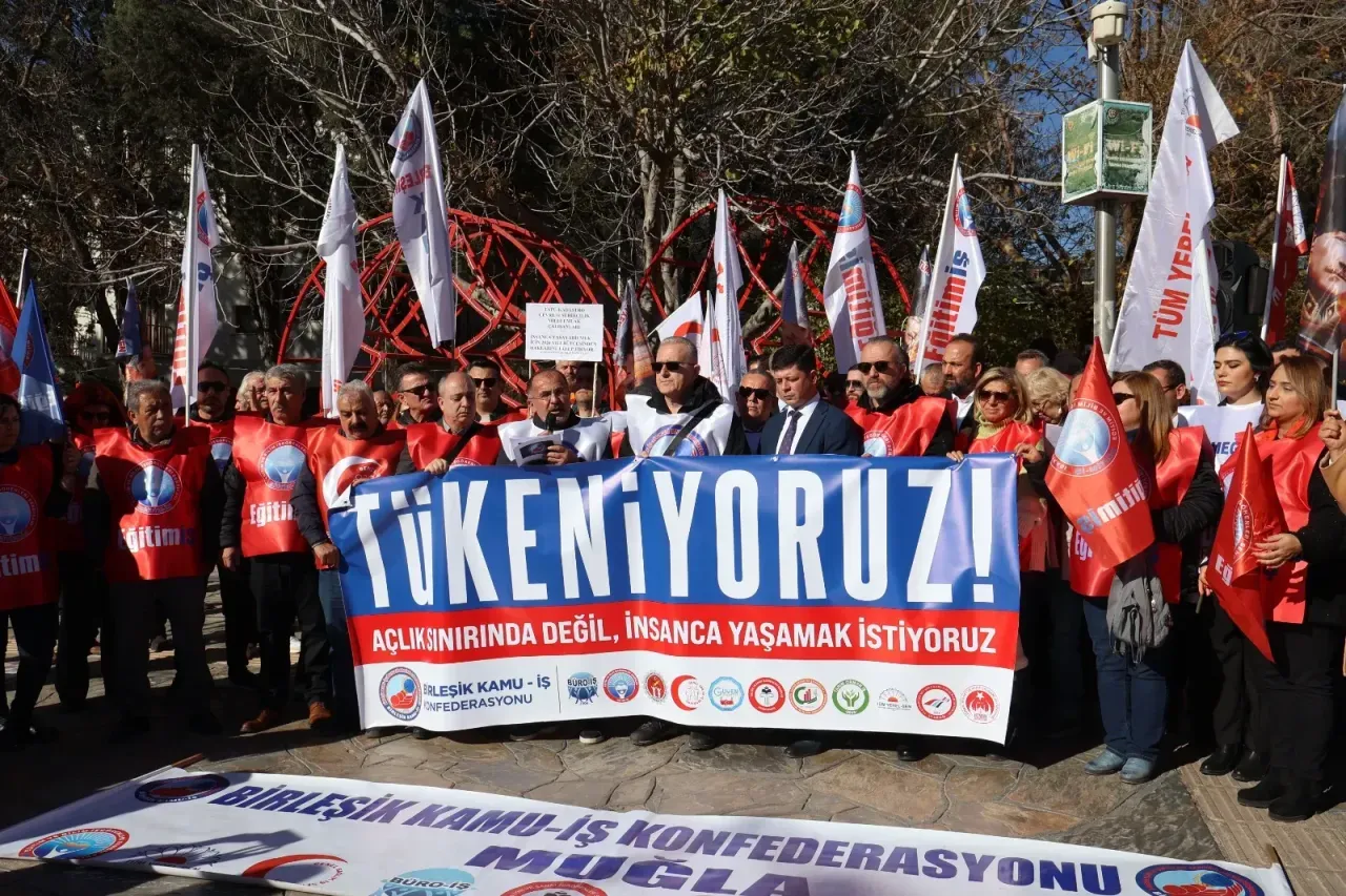 Birleşik Kamu-İş Konfederasyonu Muğla Şubesi, Muğla’nın Menteşe ilçesindeki Sınırsızlık Meydanı’nda 1 günlük iş bırakma eylemi ve basın açıklaması gerçekleştirdi. “Tükeniyoruz! Açlık sınırının altında değil, insanca yaşamak istiyoruz!” başlığıyla düzenlenen eyleme; CHP Muğla İl Başkanı Nail Kızıl, Birleşik Kamu-İş Konfederasyonu Muğla İl Başkanı Özkan Kaya ile çok sayıda sendika üyesi katıldı.