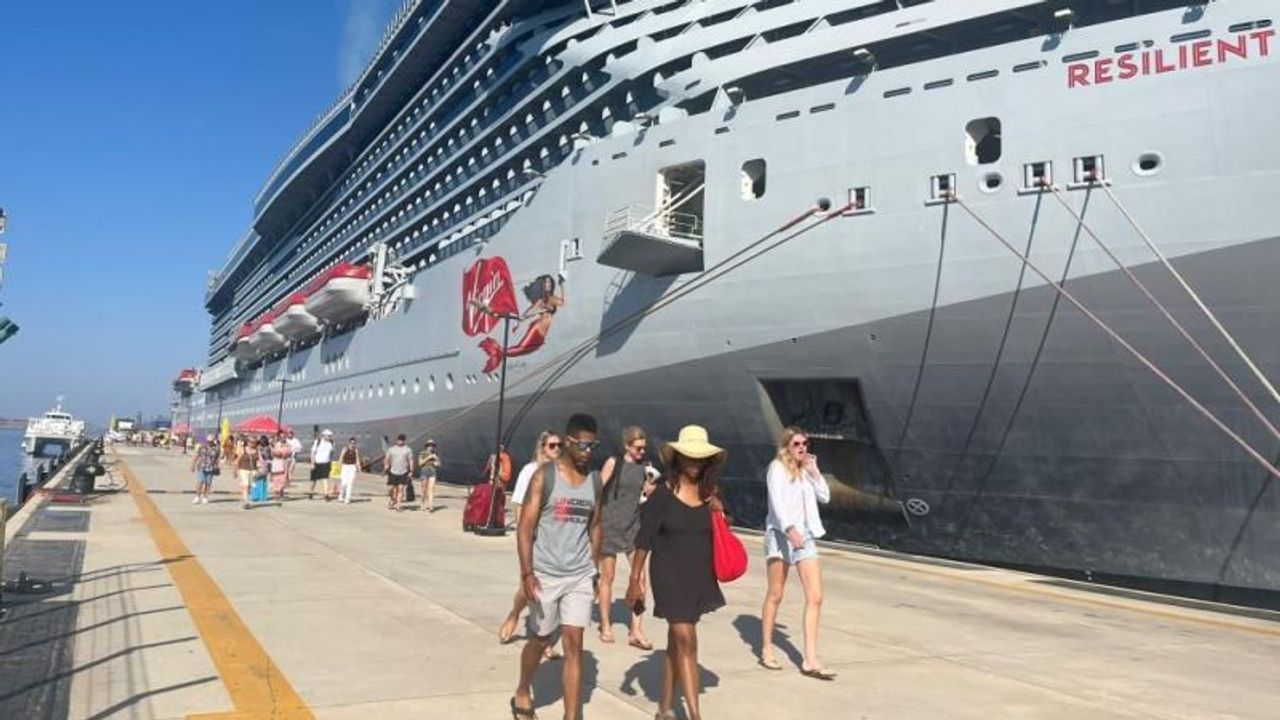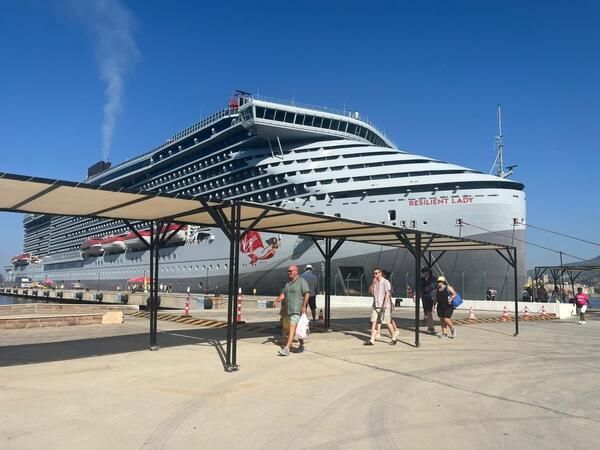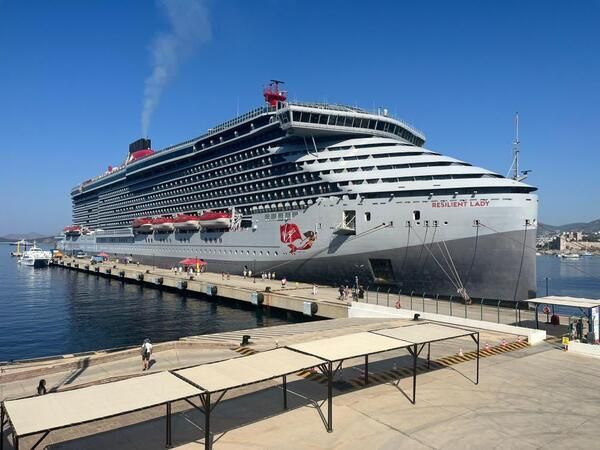 Muğla’nın Bodrum ilçesine gelen Resilient Lady adlı kurvaziyer, 2 bin 600 yolcu getirdi.