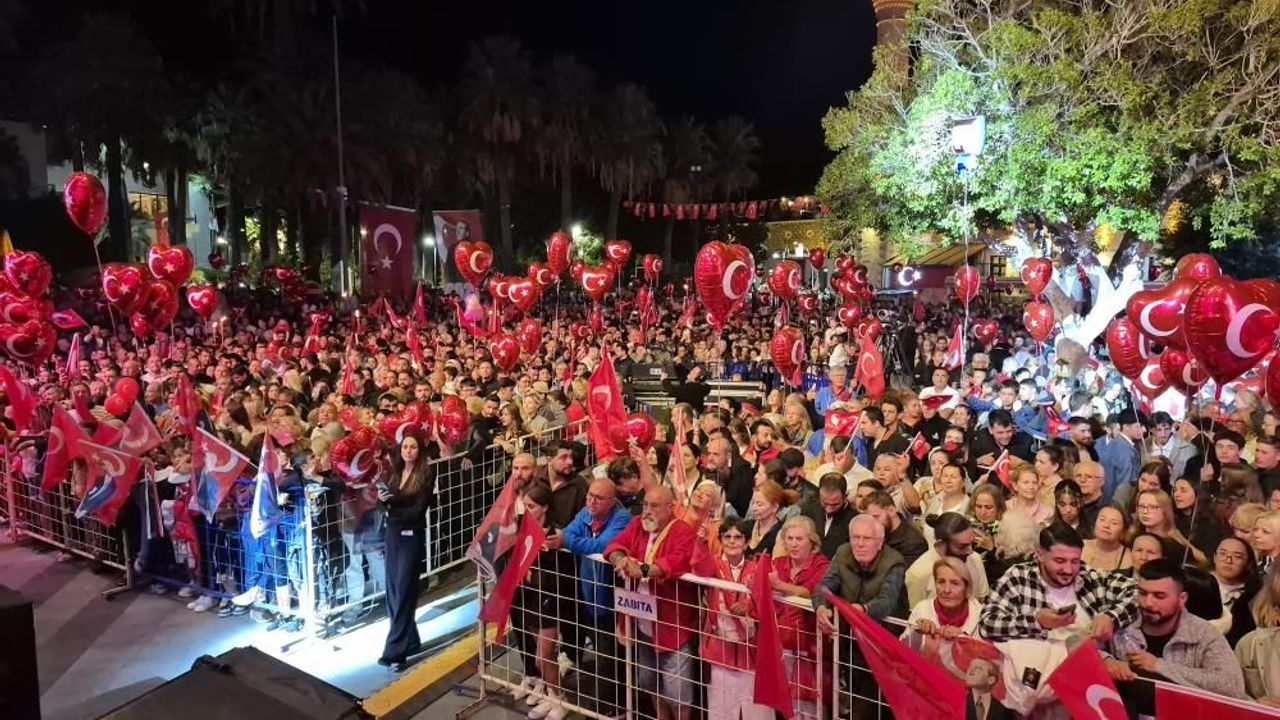 Bodrum Belediye Meydanı’nda gerçekleşen Fettah Can ve Senfoni Orkestrası konseriyle Cumhuriyet coşkusu tüm kente yayıldı. Bir müzik şöleni yaşanan konserde tüm katılımcılar şarkılara hep birlikte eşlik etti. Başkan Mandalinci, sanatçı Fettah Can’a çiçek ve Bodrum Futbol Kulübü forması hediye etti.