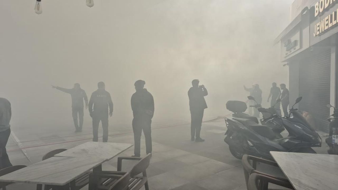Muğla'nın Bodrum ilçesinde LC Waikiki firmasına ait mağazanın geri dönüşüm deposunda çıkan yangın kısa süreli paniğe neden olurken, Bodrum sokakları dumanla kaplandı.