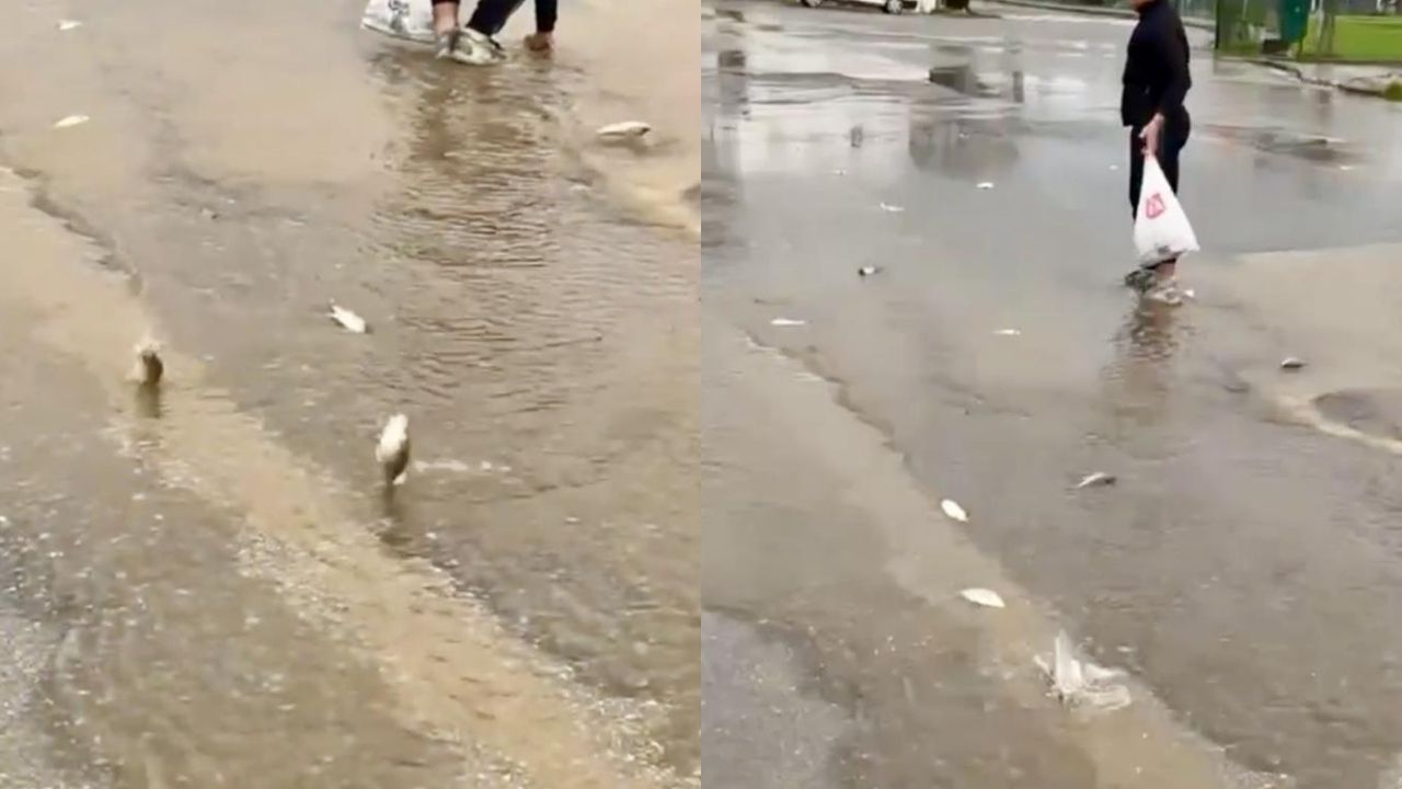 Göletten taşan sularla birlikte balıkların da akıntıya kapıldığı görüldü. Asfalta kadar sürüklenen balıklar, çevrede bulunan vatandaşları şaşkına çevirdi. Yolda çırpınan balıkları gören bazı kişiler canlıları tekrar suya ulaştırmak için çaba gösterirken, bazı vatandaşlar ise balıkları toplayarak bölgeden ayrıldı.