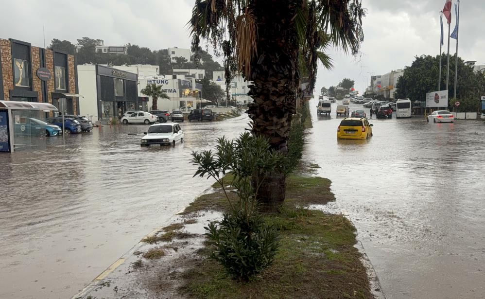 Bodrum'da sabah saatlerinde bir anda bastıran sağanak, ilçeyi sular altında bıraktı. Cadde ve sokaklar sel sularıyla dolarken araçlar suyun içinde sürüklenme tehlikesi yaşadı. Sürücüler panikle kapıları açıp dışarı çıkmaya çalıştı, kimi araçlar hareketsiz şekilde yarıya kadar suya gömüldü.