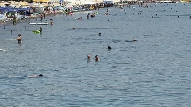 Kimi turistler serinlemek için kendini Ege’nin serin sularına bırakırken, kimileri ise güneşin altında bronzlaşmayı tercih etti. Serinlemek isteyen turistler sahillerde yoğunluk oluşturdu.