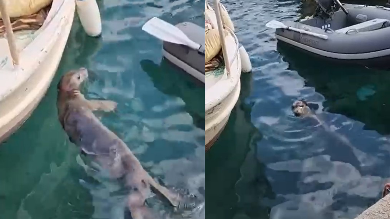 Bayram tatili dolayısıyla bölgeye gelen yerli turistler, limana yaptıkları ziyarette teknelerin arasında yüzen yavru Akdeniz fokunu fark etti. Nadir görülen türler arasında yer alan fok, kısa sürede çevrede bulunanların dikkatini çekti.