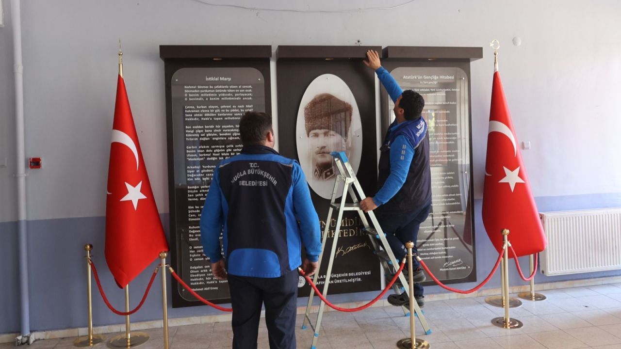 Ara tatil döneminde Muğla Büyükşehir Belediyesi ekipleri, 5 ilçede toplam 8 okulda bakım ve onarım çalışmaları gerçekleştirdi. Öğrencilerin ve öğretmenlerin kullanımına sunulmak üzere yeni Atatürk büstleri ve Atatürk köşeleri de hazırlandı. Büyükşehir Belediyesi il genelinde185 adet Atatürk Büstü, 84 adet Atatürk Köşesi okullara kazandırıldı.