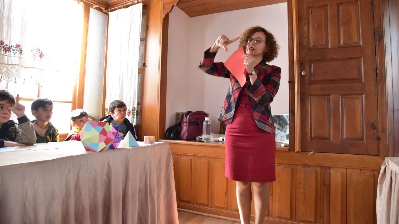 7–12 yaş grubuna yönelik düzenlenen etkinlikte çocuklar, origami teknikleriyle geometrik şekiller oluşturdu. Aynı zamanda katılımcılar katlama ve boyama süreçleriyle hem yaratıcı hem de analitik düşünme becerilerini geliştirdi.