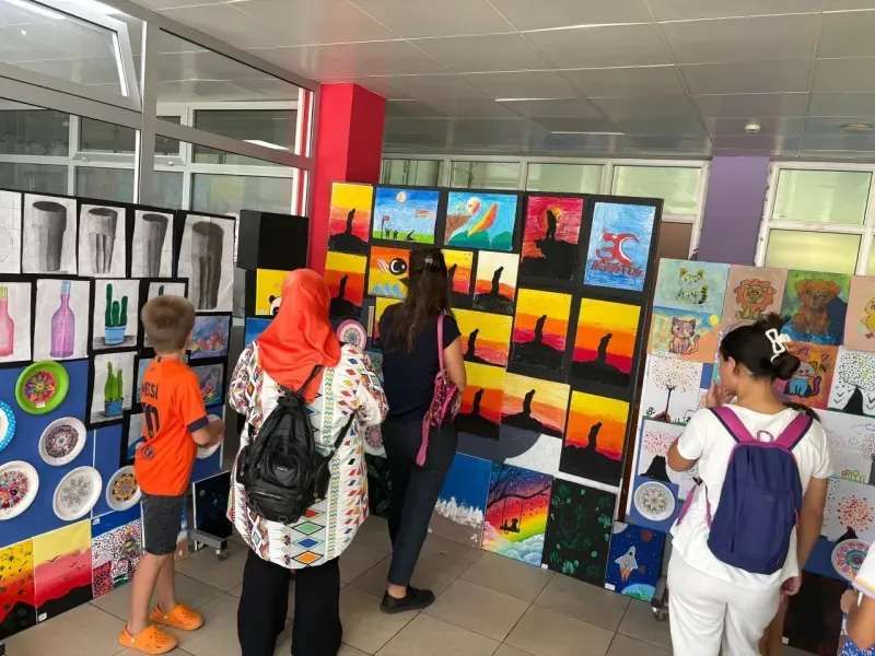 Farklı yaş gruplarındaki öğrencilerin katılımıyla hazırlanan sergi, doğa, aile, arkadaşlık ve dünya üzerine kurulan hayallerin resimlerle buluştuğu renkli bir atmosfer sundu. Minik sanatçılar, sergi açılışında kendi eserlerini tanıtarak duygu ve düşüncelerini paylaştı. Aileler ve öğretmenler de öğrencileri yalnız bırakmayarak heyecanlarına ortak oldu.