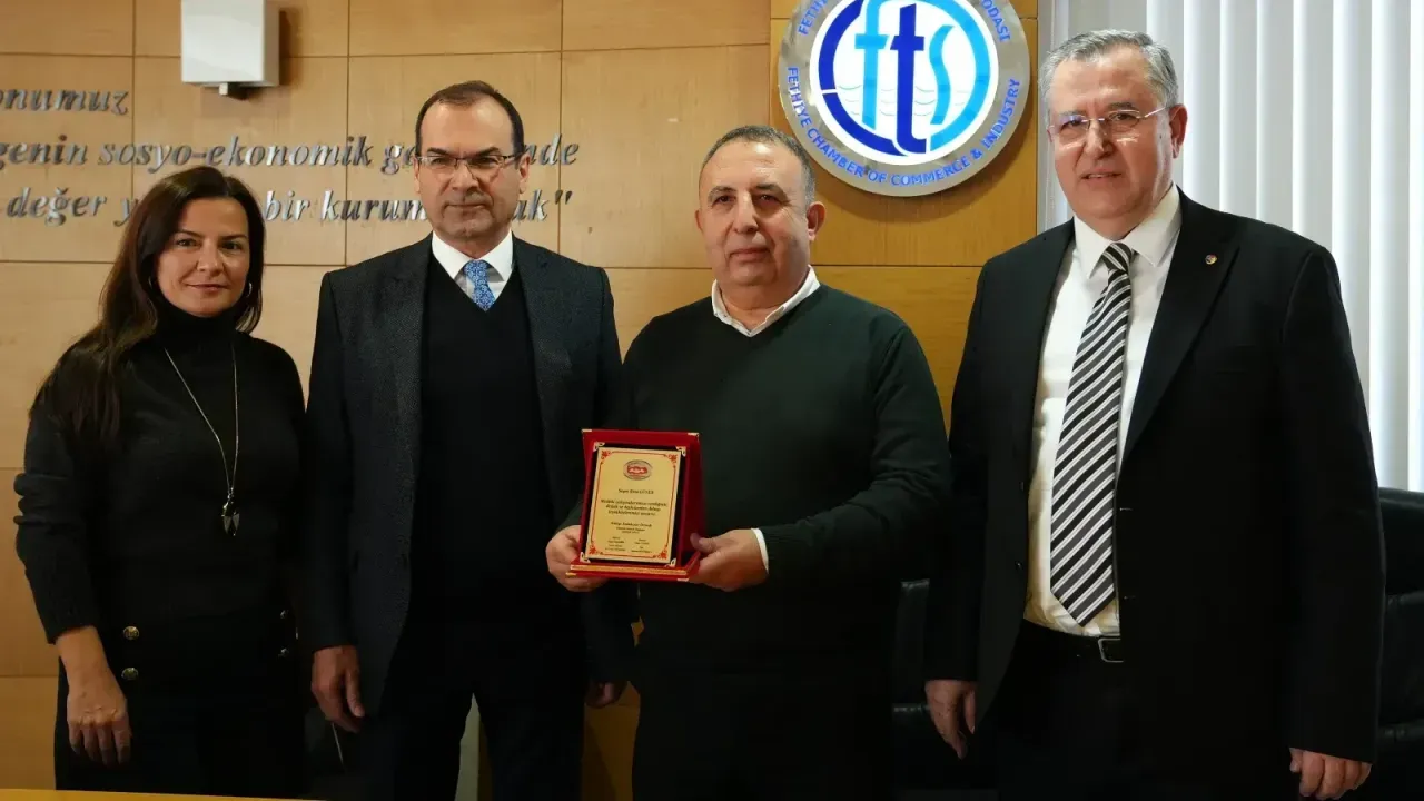 Fethiye Emlakçılar Derneği Başkanı Serdar Oğuz, emlak sektörü temsilcileri adına detaylı bilgilendirme için LİHKAB Birol Güner’e teşekkür ederek, katkıları için plaket takdim etti.