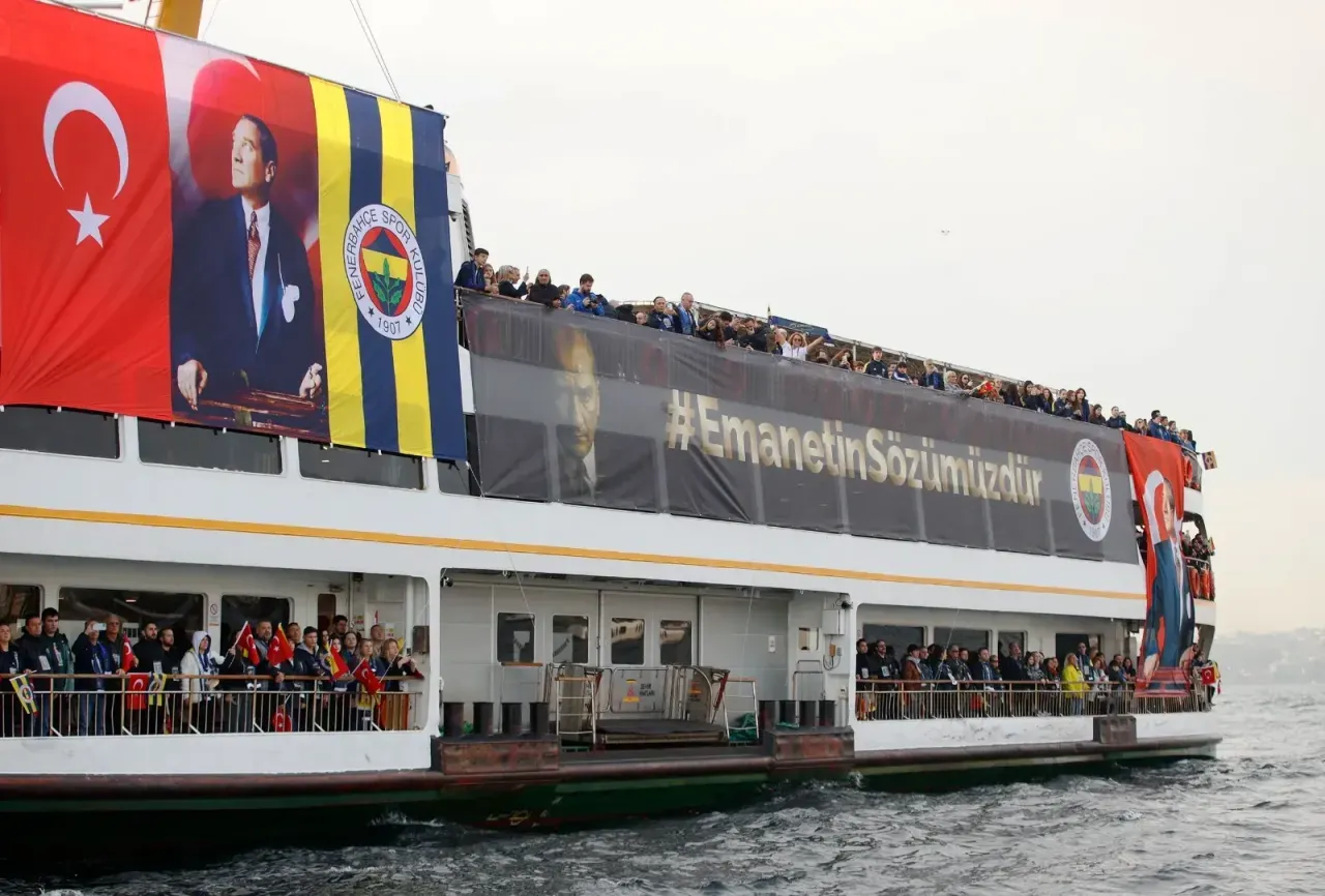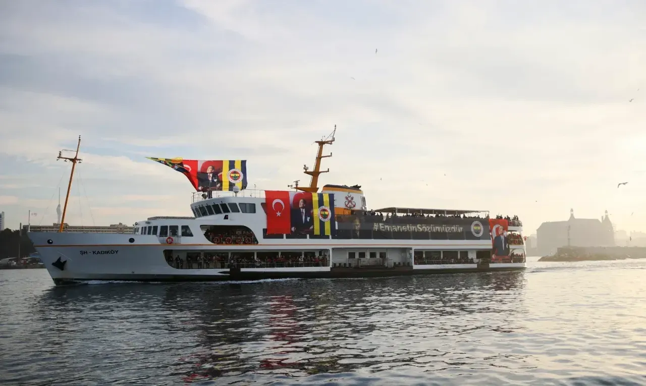 Kadıköy'de bulunan Eminönü-Karaköy Şehir Hatları İskelesi'nden; Türk bayrakları, Fenerbahçe bayrakları ve Atatürk portresiyle donatılmış vapurla Dolmabahçe Sarayı'na doğru hareket edildi.