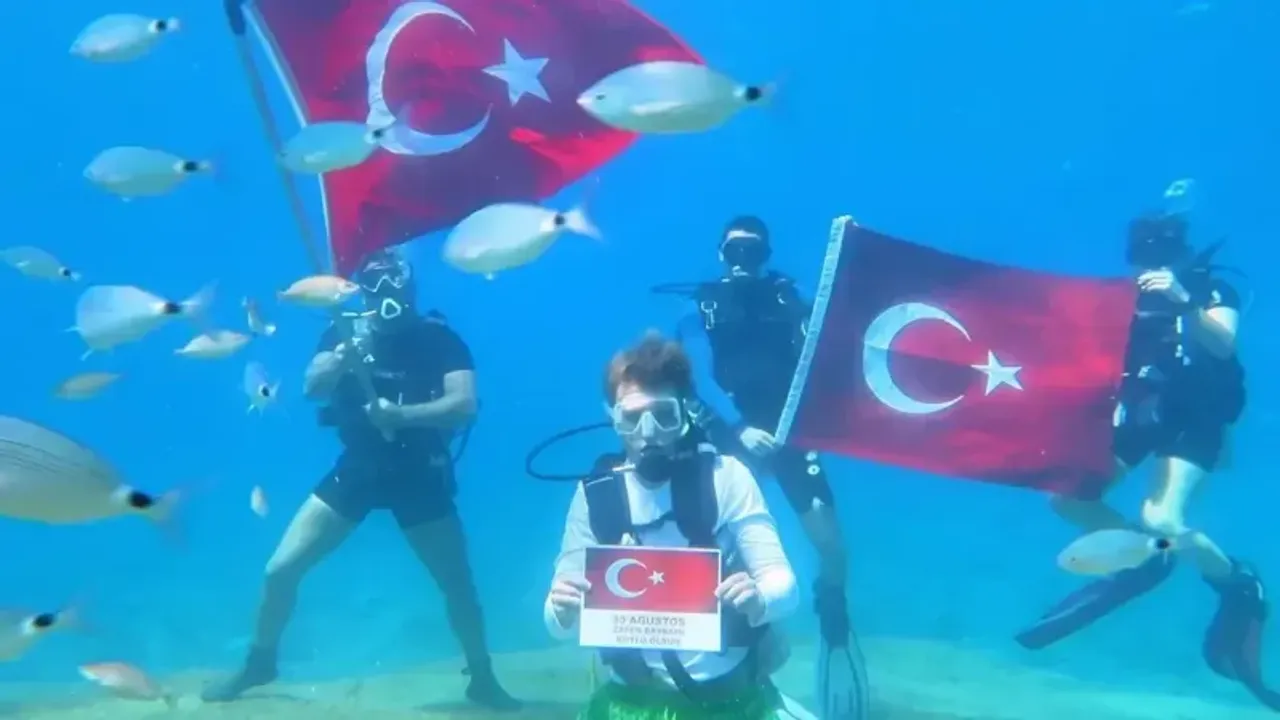 Etkinliğe dalgıçlar Önder Diktaş, Barış Safran, Berkay Çetin, Ersu Mengi, İbrahim Tombak, Burkay Kayıran ve Can Aksoy katıldı. Dalgıçlar, denizin dibinde açtıkları ay yıldızlı bayrakla poz verirken, o anlar su altı kamerasıyla görüntülendi.