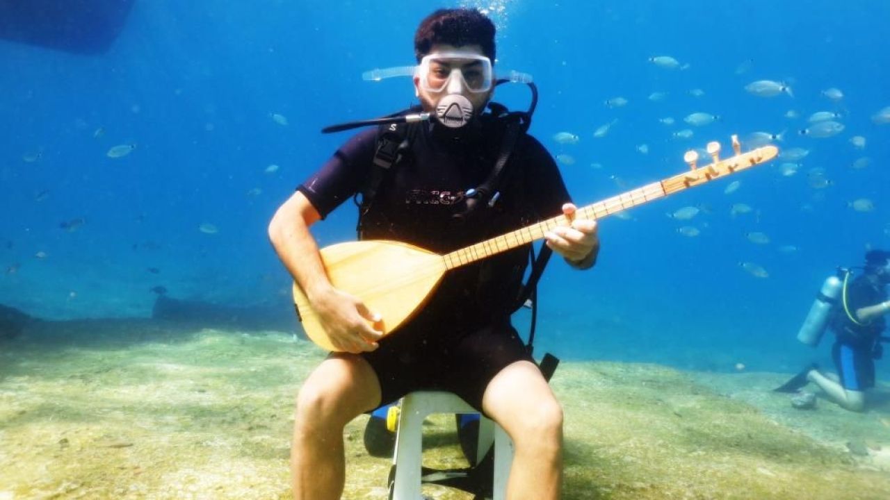 Fethiye Dalış Merkezi’ne başvuran Türk Halk Müziği sanatçısı Yunus Koşar, tüplü dalış yapmak istedi. Koşar, Dalyan koyunda 5 metre derine dalış eğitmeni Önder Diktaş ile inip, sazı ile deniz dibinde tabureye oturup Neşet Ertaş'a ait' Halime Kız’ türküsünü çalıp söyledi. Adeta balıklara müzik ziyafeti çeken sanatçı Yunus Koşar, bugüne kadar yapmak istediği hayaline kavuştuğu için mutlu olduğunu belirtti.