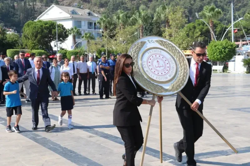 İlköğretim Haftası etkinlikleri kapsamında gerçekleşen programa, Fethiye İlçe Milli Eğitim Müdürü Faruk Kaya, AK Parti İlçe Başkanı Kadir Sarıhan, şube müdürleri, okul müdürleri, öğretmenler, öğrenciler ve vatandaşlar katıldı. Program, İlçe Milli Eğitim Müdürlüğü çelenginin İlçe Milli Eğitim Müdürü Faruk Kaya ve öğretmenler tarafından Atatürk Anıtı'na sunulmasıyla başladı. Ardından saygı duruşunda bulunulup İstiklal Marşı söylendi.