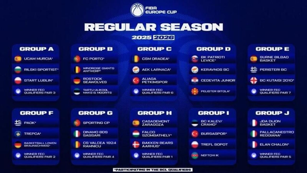 Uluslararası Basketbol Federasyonu (FIBA) Avrupa Kupası 2025-26 sezonu normal sezon grupları ve eleme eşleşmeleri yapılan kura çekimiyle belirlendi. Türkiye'den Aliağa Petkimspor, C Grubu'nda yer aldı. Bursaspor ise Basketbol Şampiyonlar Ligi (BCL) elemelerinden gelmesi durumunda I Grubu’nda yer alacak.