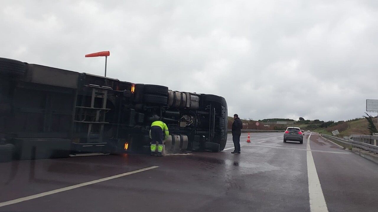 Bursa İstanbul otobanı Orhangazi Gebze arasındaki bir viyadükte tır fırtınanın etkisiyle devrildi. Diğer sürücüler de panik yaptılar. Aracın sürücüsü direksiyondan hafif yaralı olarak kurtuldu.