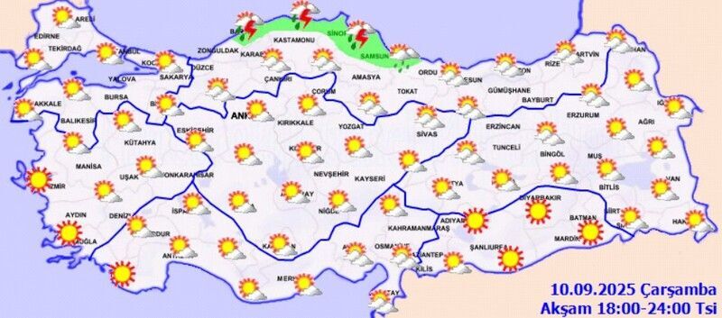 Parçalı, doğusu yer yer çok bulutlu. Trabzon, Rize çevreleri ve Artvin kıyıları sağanak yağışlı.
