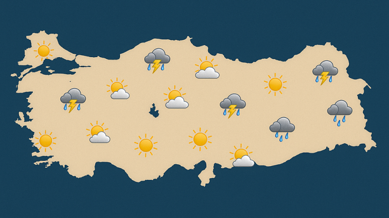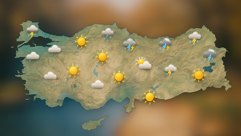 Parçalı ve az bulutlu, kuzey kesimleri sağanak ve gök gürültülü sağanak yağışlı.