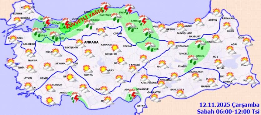 Düzce, Zonguldak ve Bartın çevrelerinde kuvvetli yağış bekleniyor.