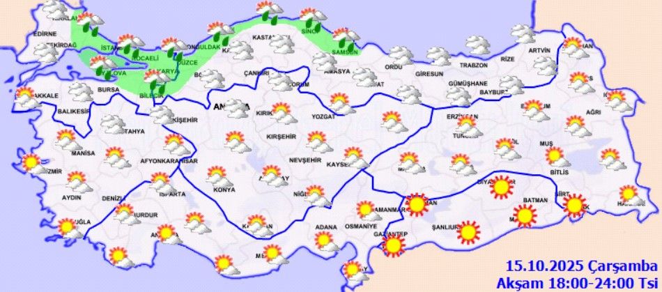 Parçalı ve az bulutlu, kuzey kesimlerinde yer yer çok bulutlu.