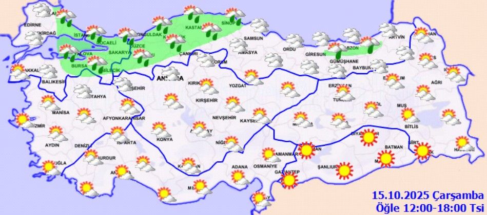 Bolu: 16°C – Öğle saatlerinden sonra sağanak yağışlı