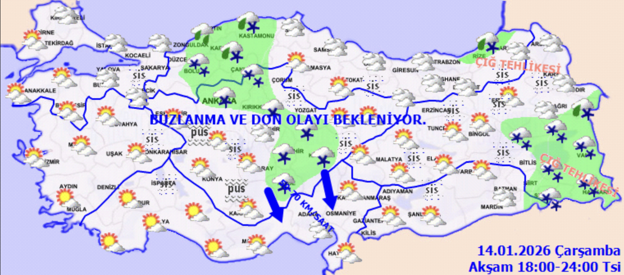 Meteoroloji’nin son değerlendirmelerine göre Türkiye genelinde dondurucu bir hava hakim. Ankara, Kırıkkale, Kayseri, Nevşehir ve Niğde başta olmak üzere İç Anadolu genelinde kar yağışı bekleniyor. Karadeniz hattında ise Zonguldak, Bartın, Sinop ve Samsun çevrelerinde yağmur etkili olurken; Rize ve Artvin kıyılarında karla karışık yağmur ve kar görülecek.