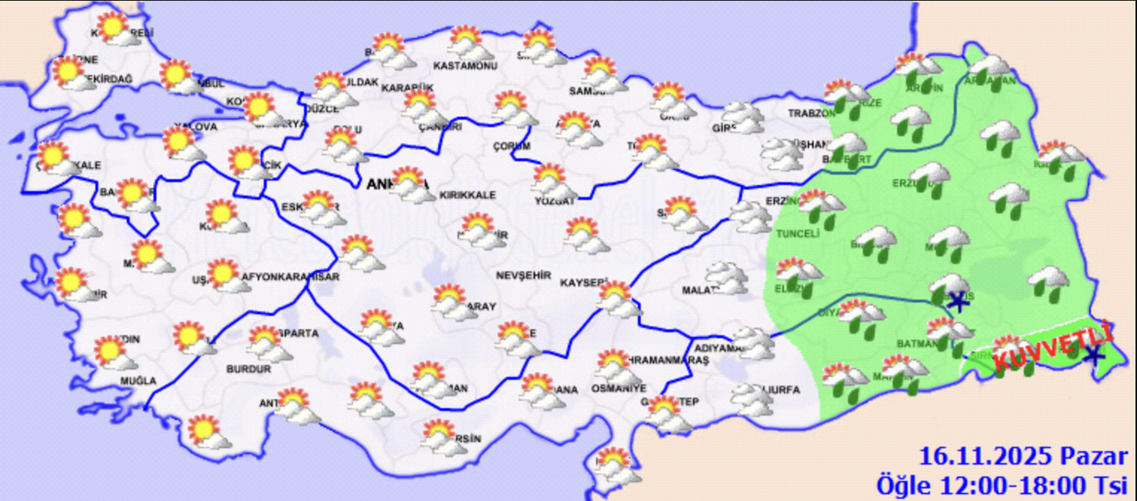 Malatya 5°C – Parçalı çok bulutlu, sabah ve akşam sağanak yağışlı