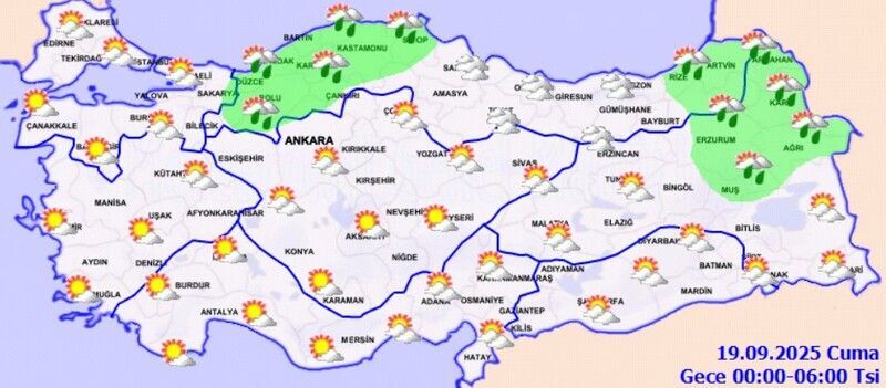 Parçalı ve çok bulutlu, doğusu sağanak yağışlı.
