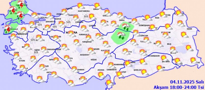 Parçalı ve çok bulutlu bir gün geçecek. Ancak Trakya, Çanakkale ve İstanbul’un batı kesimlerinde akşam saatlerinden itibaren sağanak ve gök gürültülü sağanak bekleniyor. Sabah ve gece saatlerinde bölge genelinde pus ve yer yer sis görülebilir.