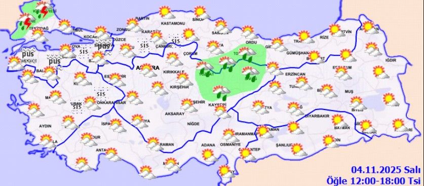 Parçalı ve çok bulutlu; Tokat çevrelerinde öğle saatlerinden itibaren sağanak ve gök gürültülü sağanak bekleniyor.