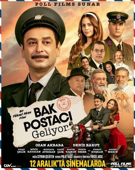 Bak Postacı Geliyor, 1950’li yılların sonlarında küçük ve sessiz bir Ege kasabasında posta memuru olarak görev yapan Osman’ın, ulaşılması güç aşkı Gülizar’a kavuşma mücadelesini anlatıyor; sıcak bir kasaba atmosferi, imkânsız bir aşkın izleri ve dönemin duygusal tonlarıyla ilerleyen film, dram ve romantizm türlerini bir araya getiriyor. Hem yönetmenliğini hem senaryosunu Yüksel Aksu’nun üstlendiği yapımın başrollerinde Ozan Akbaba, Mustafa Avkıran ve Deniz Barut yer alıyor. Film 12 Aralık’ta vizyona girecek.