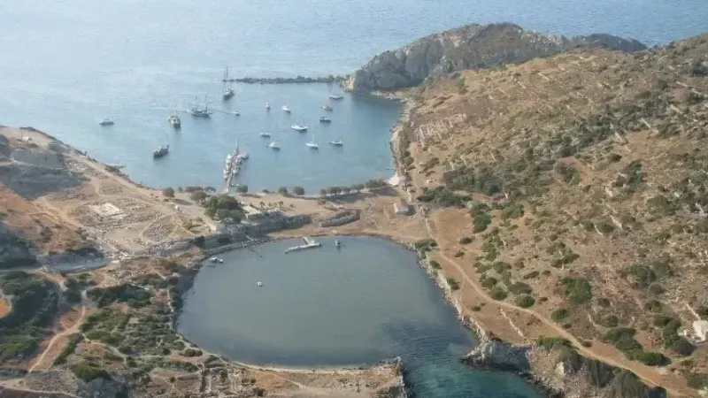 Antik dönemin ünlü merkezlerinden Kos ile Rodos adaları arasında kurulmuş olan Knidos, Karya bölgesinin en önemli merkezlerinden biri ve Halikarnassos’tan sonra bilinen ikinci bir Dor kentidir. Peleponnes’ten gelen Dorlar, Rodos ve Kos yerleşimlerinden kısa bir süre sonra Knidos kentini kurmuşlardır. Strabon, kentin teraslar üzerinde kurulu olduğunu ve bir tiyatro gibi kıyıdan akropolise doğru yükseldiğini belirtmektedir. Gerçekten de arazinin dağlık yapısından dolayı Knidos bir teraslar kentidir. Şehir dar bir kara parçasıyla deve boynu ya da Kap Krio olarak adlandırılan adacıkla birleşmiştir. Bunun sonucunda oluşan iki koya birer liman yapılmış, bunlardan batıdaki savaş gemileri, doğudaki ise ticaret gemileri tarafından kullanılmıştır.
