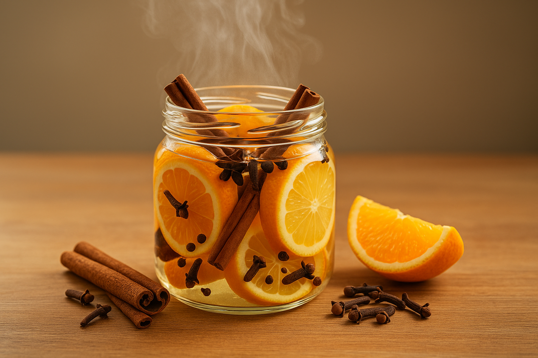 Narenciye kabukları evin havasını tazelemek için en doğal yöntemlerden biri. Limon, portakal veya mandalina kabuklarını kaynatarak çıkan buharı odalara yayabilirsiniz. Etkisini artırmak için birkaç dal tarçın, karanfil veya vanilya eklemek mümkün. Bu yöntem hem yemek kokularını bastırır hem de doğal bir oda parfümü etkisi yaratır. Ayrıca bu karışımı küçük cam kavanozlara koyarak odalara dekoratif bir şekilde yerleştirebilirsiniz.