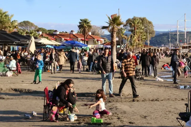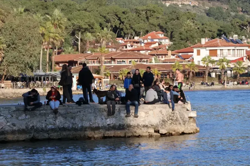 Muğla'nın Ula ilçesine bağlı, 'Sakin Kent' unvanıyla bilinen Akyaka, yağışlı günlerin ardından gelen güneşli Pazar gününde yoğun bir ziyaretçi akınına uğradı. Şehrin stresinden kaçmak ve huzurlu bir gün geçirmek isteyen vatandaşlar, Akyaka Sahili'ni tercih etti.