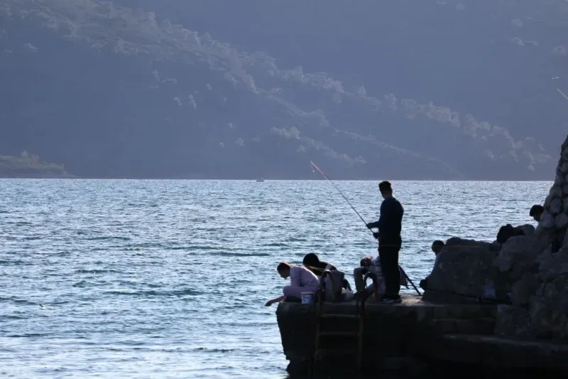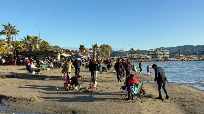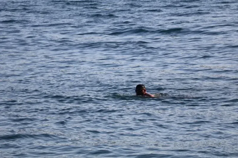 Soğuk kış günlerinde bile deniz keyfinden vazgeçemeyenler, Akyaka’nın berrak sularına kendilerini bıraktı. Denize girenlerin yanı sıra sahilde balık tutanlar da vardı.