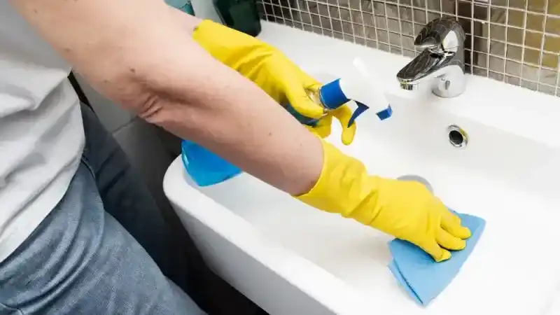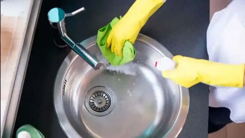 Kompozit lavabolar için uygun temizlik maddeleri arasında klor bazlı ürünler veya Domestos gibi temizlik malzemeleri bulunur. Temizlik ürününü lavaboya uygulayın, bir süre bekletin ve ardından iyice durulayarak temizliği tamamlayın.