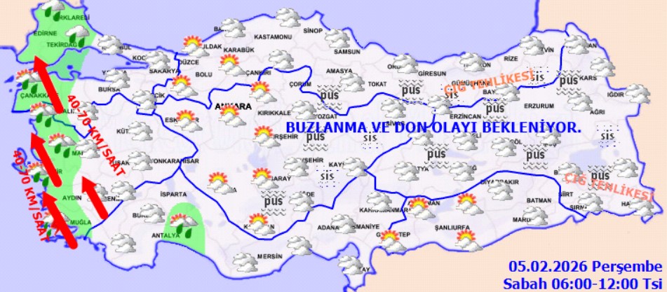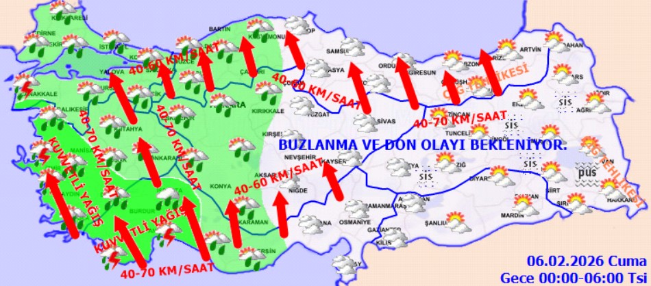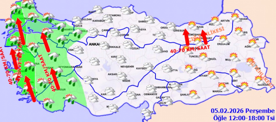 Meteoroloji’nin son değerlendirmelerine göre Türkiye genelinde parçalı ve çok bulutlu bir hava hakim olacak. Özellikle Kıyı Ege, Batı Akdeniz ile Edirne, Çanakkale, Balıkesir, Manisa ve Denizli çevrelerinde yağışların kuvvetli; Kıyı Ege ve Çanakkale genelinde ise yer yer çok kuvvetli olması bekleniyor. Vatandaşların ani sel, su baskını, yıldırım, yerel dolu yağışı ve kıyılarda oluşabilecek hortum riskine karşı son derece dikkatli olması gerekiyor.